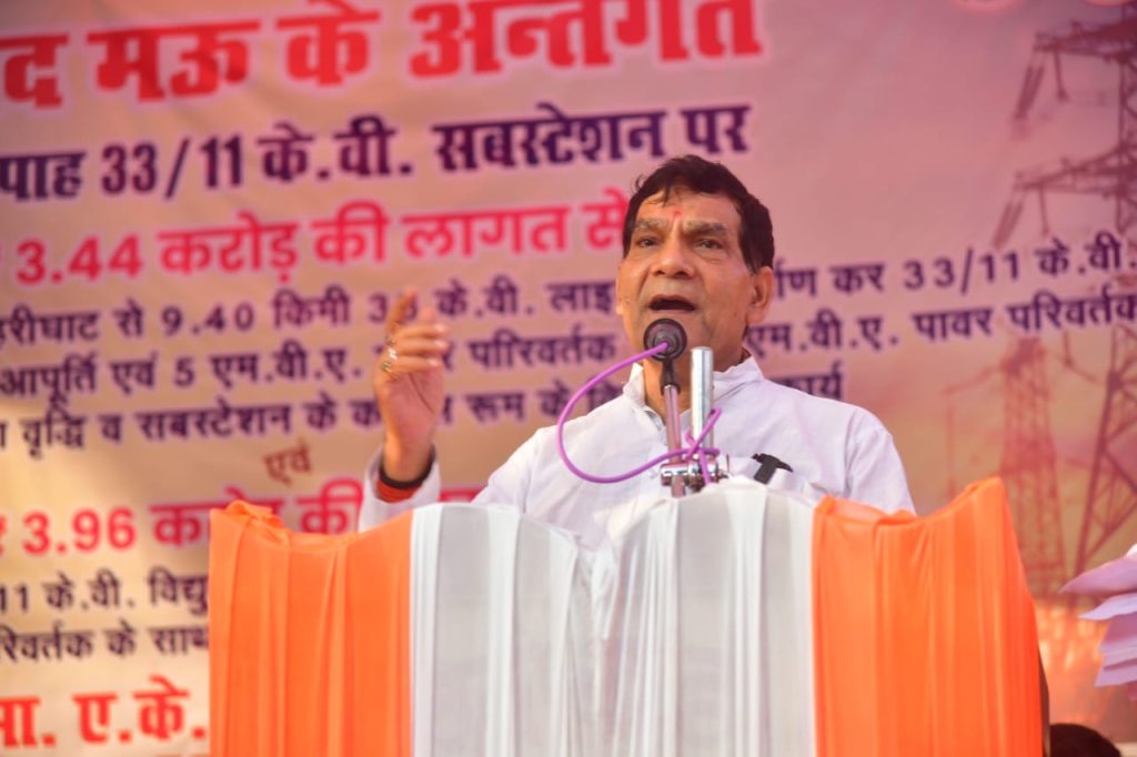 अपने संबोधन में श्री शर्मा ने कहा कि “हमारी सरकार सबका साथ, सबका विकास, सबका विश्वास और सबका प्रयास के मंत्र पर कार्य कर रही है। मऊ सहित पूरे प्रदेश के हर क्षेत्र में विकास को समान रूप से गति दी जा रही है। ऊर्जा विभाग और नगर विकास विभाग मिलकर यह सुनिश्चित कर रहे हैं कि हर गांव, हर शहर का समेकित विकास हो। ऊर्जा मंत्री ने बताया की विगत वर्ष में जनपद मऊ में 1160 ट्रांसफार्मर्स की क्षमता वृद्धि हुई है, 192 नए ट्रांसफार्मर लगे हैं एवं 33 केवी की ग्यारह नई लाइन भी लगाई गई है। कार्यक्रम के दौरान पूर्व चेयरमैन गुलाब गुप्ता, क्षेत्रीय महामंत्री सुनील गुप्ता,गुलाब चंद्र,विनय जायसवाल,शुभम,दिग्विजय सहित अन्य गणमान्य तथा संबंधित अधिकारी सहित बड़ी संख्या में स्थानीय नागरिक उपस्थित रहे।