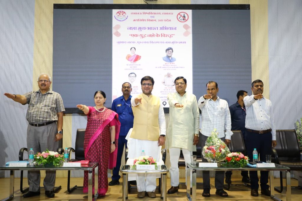 कुलपति प्रो० मनुका खन्ना द्वारा मादक पदार्थों के सेवन से होने वाले दुष्परिणामों के प्रति जनसामान्य को अवगत कराते हुए इनके सेवन की बढ़ती प्रवृत्ति को समाज के लिए चिन्ता का विषय बताया। प्रो० वी०के० शर्मा, छात्र कल्याण, लखनऊ विश्वविद्यालय द्वारा नशे से होने वाली हानियों के बारे में अवगत कराते हुए नशा न करने की प्रेरणा दी गयी। राज्य मद्यनिषेध अधिकारी, उत्तर प्रदेश द्वारा युवाओं को मादक पदार्थों के सेवन से परिवार, समाज व राष्ट्र को हो रही क्षति के सम्बन्ध में अवगत कराया गया। लखनऊ विश्वविद्यालय के छात्र/छात्राओं के मध्य दिनांक 17 सितम्बर को पोस्टर /वाद-विवाद (डिबेट) / निबन्ध प्रतियोगिता आयोजित करायी गयी, जिसमें लगभग 200 छात्र/छात्राओं द्वारा प्रतिभाग किया गया। प्रतियोगिता में विजयी प्रतिभागियों को आज पुरस्कृत किया गया। साथ ही नशा मुक्त भारत अभियान के तहत सशक्त भारत का निर्माण किये जाने हेतु सभागार में उपस्थित सभी लोगों को नशा विरोधी शपथ दिलायी गयी।