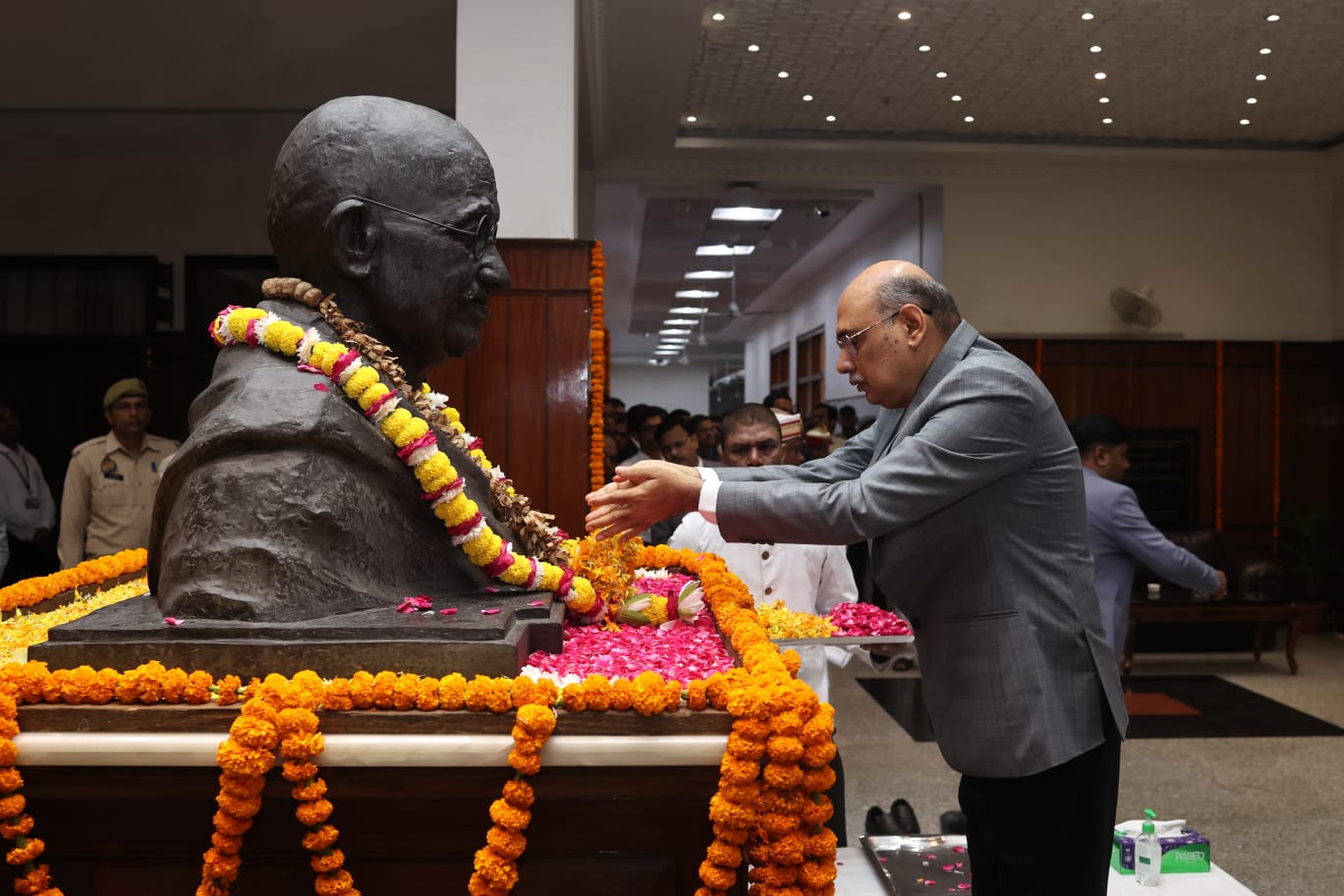 इलाहाबाद उच्च न्यायालय, लखनऊ पीठ में आज गांधी जयंती के अवसर पर न्यायमूर्तियों, वरिष्ठ निबंधक, रजिस्ट्री अधिकारियों एवं कर्मचारियों की उपस्थिति में कार्यक्रम आयोजित किया गया। इस अवसर पर माननीय वरिष्ठ न्यायमूर्ति श्री राजन रॉय ने महात्मा गांधी की प्रतिमा पर माल्यार्पण कर उन्हें श्रद्धांजलि अर्पित की। इसके उपरांत पुष्पांजलि अर्पित की गई और राष्ट्रगान का गायन हुआ।