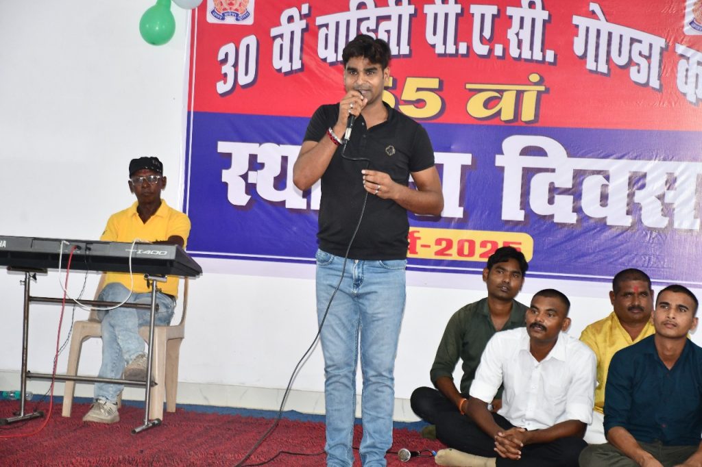 गोण्डा शहर में लखनऊ मार्ग स्थित तीसवीं वाहिनी पीएसी में मंगलवार को 55 वे स्थापना दिवस के अवसर पर कार्यक्रम की शुरुआत पीएसी सेनानायक त्रिभुवन सिंह के मौजूदगी में शुभारंभ हुआ पीएसी जवानों द्वारा देशभक्ति से सराबोर रंगोली भी सजाई गईं है। तीसवीं वाहिनी के जवानो ने 55 वां स्थापना दिवस को रंगारग एवं उल्लास पूर्ण वातावरण में भव्य शुभारंभ हुआ। मेले में वाहिनी के जवानों द्वारा प्रतियोगिता एवं जवानों द्वारा सांस्कृतिक प्रोग्राम भी किया गया है