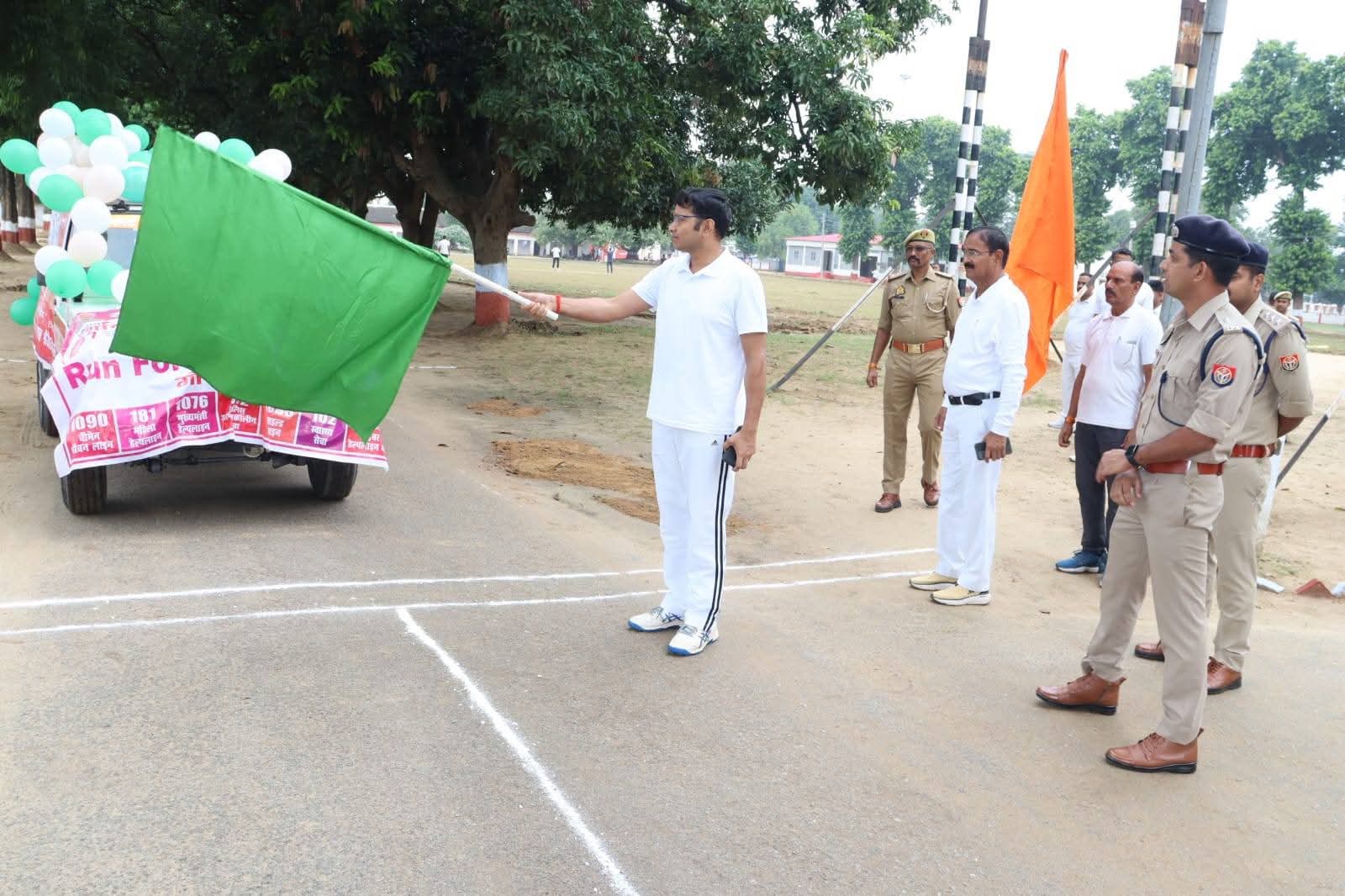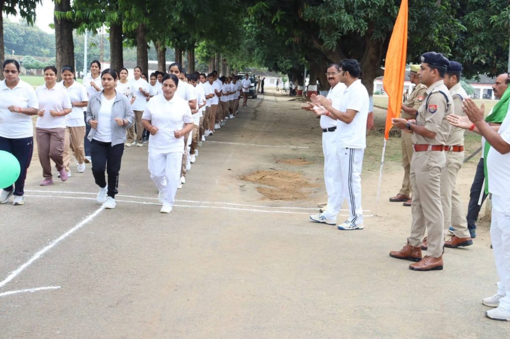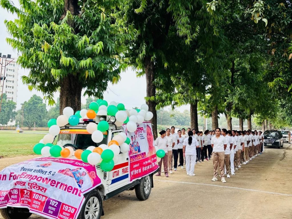 गोण्डा। आज दिनांक 07.10.2025 को पुलिस अधीक्षक गोण्डा श्री विनीत जायसवाल के नेतृत्व में मिशन शक्ति अभियान 5.0 के अंतर्गत “रन फॉर एंपावरमेंट” का आयोजन किया गया, जिसमें गोण्डा पुलिस की मिशन शक्ति टीम की महिला पुलिसकर्मियों ने महिला अधिकारियों के नेतृत्व में उत्साहपूर्वक भाग लिया। पुलिस अधीक्षक महोदय द्वारा हरी झंडी दिखाकर इस दौड़ का शुभारंभ किया गया, जो गोण्डा पुलिस लाइन से प्रारंभ होकर कचहरी, अंबेडकर चौराहा, एनसीसी कार्यालय होते हुए यातायात कार्यालय पर संपन्न हुई। इस दौड़ का उद्देश्य समाज में महिलाओं की सुरक्षा, सम्मान और स्वावलंबन के प्रति जनजागरूकता फैलाना एवं आमजन को मिशन शक्ति अभियान से जोड़ना रहा। माननीय मुख्यमंत्री जी द्वारा 22 सितंबर 2025 को शारदेय नवरात्रि के अवसर पर मिशन शक्ति अभियान के पाँचवें चरण का शुभारंभ किया गया था, जिसके अनुपालन में गोण्डा पुलिस द्वारा निरंतर विविध कार्यक्रम आयोजित किए जा रहे हैं। अभियान के अंतर्गत सभी थानों पर मिशन शक्ति केंद्र स्थापित किए गए हैं,