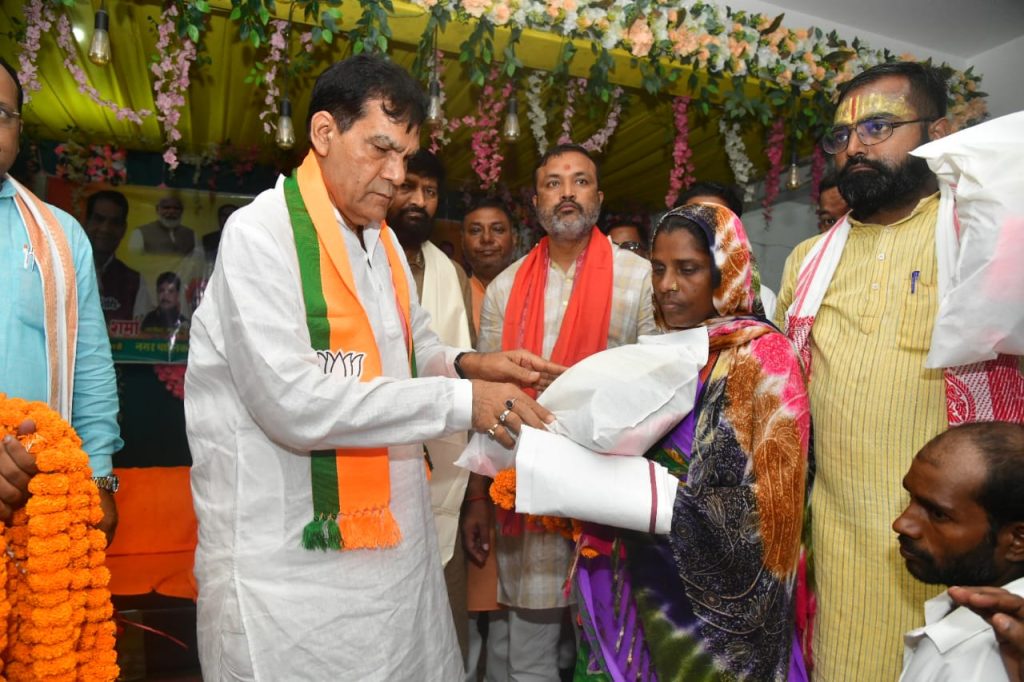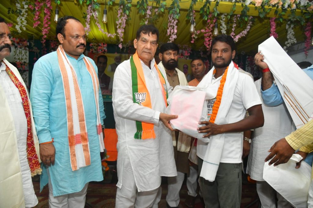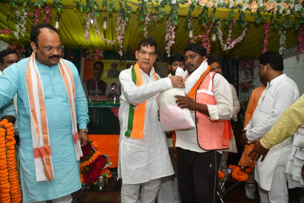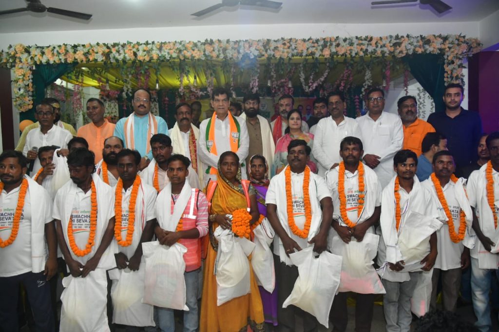 प्रभारी मंत्री श्री ए के शर्मा द्वारा सफाई कर्मियों का सम्मान एवं सफाई किट वितरण**स्वच्छता कर्मियों को समाज की रीढ़ बताते हुए मंत्री श्री ए.के. शर्मा ने बढ़ाया उत्साह*लखनऊ,20 सितंबर 2025सेवा पखवाड़ा के अंतर्गत नगर विकास एवं ऊर्जा मंत्री श्री ए.के. शर्मा की उपस्थिति में गोपीगंज(भदोही) में विशेष कार्यक्रम का आयोजन किया गया। इस अवसर पर सफाई कर्मियों का सम्मान एवं सफाई किट का वितरण किया गया।कार्यक्रम के दौरान मंत्री श्री शर्मा ने सफाई कर्मियों को माला पहनाकर सम्मानित किया और उनके कार्य को समाज के लिए अमूल्य बताया। उन्होंने कहा कि स्वच्छता कर्मी समाज की असली रीढ़ हैं, जिनके निरंतर प्रयास से शहर स्वच्छ और स्वस्थ रह पाता है।मंत्री जी ने अपने उदबोधन में कहा कि सफाई कर्मियों का सम्मान करना मेरे लिए एक सुखद अनुभव है। प्रधानमंत्री श्री नरेंद्र मोदी जी के ‘स्वच्छ भारत अभियान’ को सफल बनाने में इन कर्मियों की भूमिका अतुलनीय है। हमें हमेशा इनके योगदान को याद रखना चाहिए और इनके लिए बेहतर सुविधाएं एवं सम्मान सुनिश्चित करना हमारी प्राथमिक जिम्मेदारी है।श्री शर्मा ने उपस्थित अधिकारियों को निर्देशित किया कि सफाई कर्मियों के कार्य को सुगम बनाने हेतु उन्हें समय पर आवश्यक सामग्री, उपकरण और सुरक्षा किट उपलब्ध कराए जाएं। उन्होंने यह भी कहा कि सेवा पखवाड़ा जैसे आयोजन तभी सार्थक होंगे जब हम इन्हें जनआंदोलन का रूप दें और हर नागरिक स्वच्छता को अपनी आदत बनाए।इस दौरान श्री हरिश्याम, हरिशंकर, गुलाम सरवर, रहीम, अशोक, रंजीत आदि सफाई कर्मियों को सम्मानित किया गया।इस अवसर पर जिला पंचायत अध्यक्ष, विधायक औराई,जिलाध्यक्ष,अन्य जनप्रतिनिधिगण सहित बड़ी संख्या में सफाईकर्मी उपस्थित रहे।