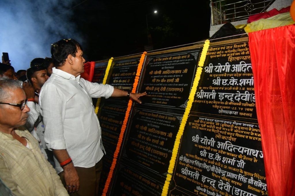 नगर विकास एवं ऊर्जा मंत्री श्री ए.के. शर्मा ने आज मऊ जनपद भ्रमण के दौरान नगर पंचायत मोहम्मदाबाद में लगभग 5 करोड़ रुपये की लागत से 43 विकास कार्यों का लोकार्पण तथा करीब 3 करोड़ रुपये की लागत से 17 नए कार्यों का शिलान्यास किया।इन लोकार्पित कार्यों में सीवरेज एवं जल निकासी व्यवस्था का सुदृढ़ीकरण, वेस्ट प्रोसेसिंग यूनिट की स्थापना, सड़कों पर इंटरलॉकिंग, नालियों का निर्माण, वाटर कूलर की स्थापना, तथा तिरंगा रोशनी सहित हाई मास्ट लाइट लगाने जैसे जनसुविधा से जुड़े कार्य शामिल हैं। इन कार्यों से मोहम्मदाबाद नगर की स्वच्छता, पेयजल व्यवस्था एवं सौंदर्यीकरण को नई दिशा मिलेगी।