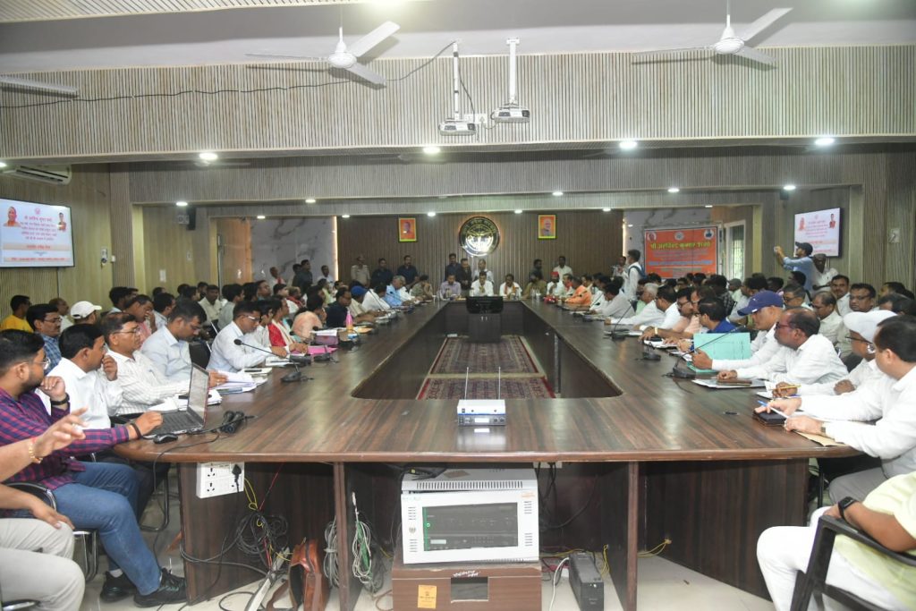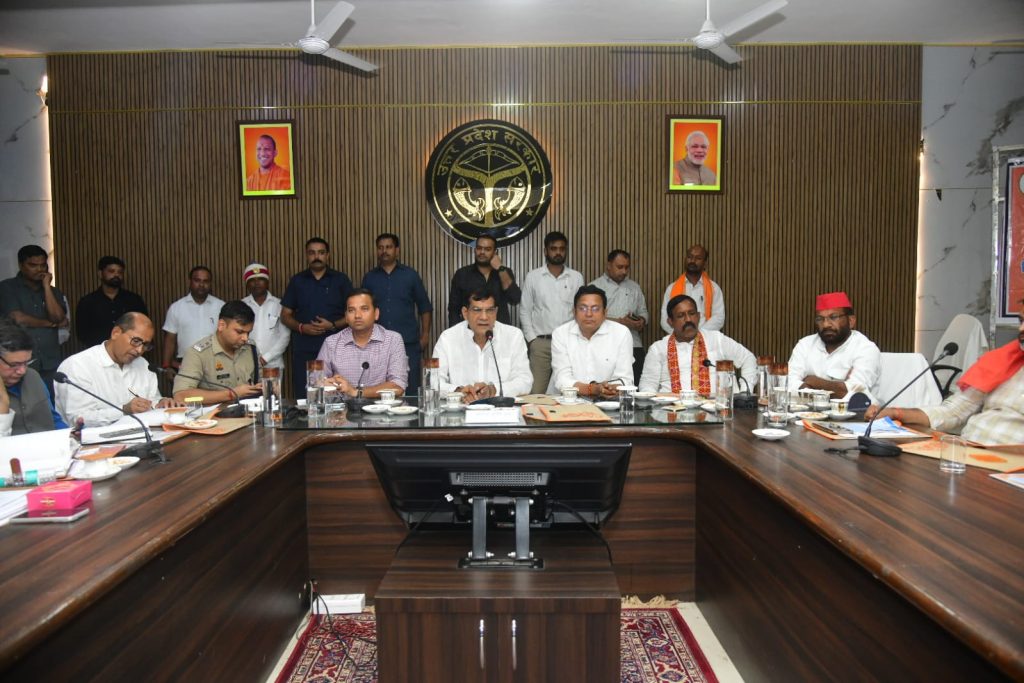 इसके पश्चात कलेक्ट्रेट परिसर स्थित प्रधानमंत्री सूर्य घर मुफ्त बिजली योजना के प्रदर्शनी कैम्प का अवलोकन कर जनपदवासियों से अनुदान आधारित सोलर विद्युत योजना लगाने हेतु अपील किया। बैठक के दौरान आकांक्षी ब्लाक औराई निर्धारित आयामों में शानदार प्रदर्शन करने पर देश में 22 रैंक व उ0प्र0 में प्रथम स्थान प्राप्त करने पर मा0 प्रभारी मंत्री ने सम्बन्धित अधिकारी व कर्मचारियों के समपर्ण कार्य की सराहना किया।प्रभारी मंत्री श्री शर्मा ने समीक्षा के दौरान बरसात के मौसम के बाद सड़कों पर गढ्ढें को भरने व ठीक करने के दृष्टिगत नगरीय क्षेत्रों में अधिशासी अधिकारियों को एवं ग्रामीण क्षेत्रों को पीडब्ल्यूडी द्वारा नवरात्रि पर्व के दृष्टिगत एक सप्ताह में अभियान चलाकर कार्य करने का निर्देश दिया। विधायक ज्ञानपुर के शिकायत को गम्भीरता से लेते हुए पीडब्ल्यूडी विभाग को निर्देशित किया कि जो सड़के अभी निर्माणाधीन है उन्हें तीव्रता से पूर्ण कर जनप्रतिनिधियों को अवगत कराएं।जनपद भ्रमण के दौरान जनपदवासियों से ट्रान्सफार्मर बदलने सम्बन्धित अधिकांश शिकायत मिलने पर प्रभारी मंत्री ने विद्युत विभाग पर कड़ी नाराजगी व्यक्त करते हुए कहा कि निर्धारित समय-सीमा में ट्रान्सफार्मर बदलना/ठीक करना सुनिश्चित करें। इसके लिए कोई शर्त न रखी जाए कि इस ट्रान्सफार्मर से सम्बन्धित इतने प्रतिशत ही विद्युत बिल जमा है। जनप्रतिनिधियों व जनपदवासियों से प्राप्त शिकायती पत्र में भण्डा, बिहरोजपुर, भुररी, घोषिया वार्ड 10, इब्राहिमपुर में तत्काल ट्रान्सफार्मर बदलते हुए विद्युत व्यवस्था सुचारू रूप से संचालित की जाये। 02 दिन बाद शुरू हो रहे शारदीय नवरात्रि दुर्गा पूर्जा पण्डाल, आयोजको से कनेक्शन के दृष्टिगत विद्युत विभाग स्वयं सम्पर्क कर औपचारिकता पूरी कर ले। बारिश के मौसम के दृष्टिगत संचारी रोग मलेरिया, डेगू इत्यादि से बचाव हेतु नगरीय व ग्रामीण क्षेत्रों में चूना छिड़काव व साफ-सफाई आदि कार्य सुनिश्चित किया जाये।